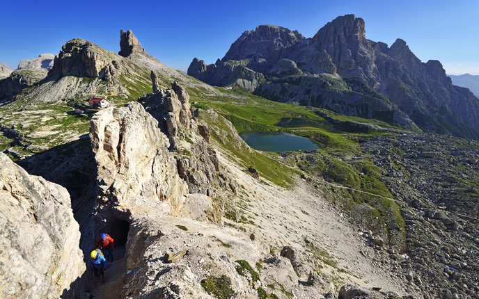 „Dolomiti senza confini - Dolomiten ohne Grenzen“ ist der erste Höhenweg bestehend aus Klettersteigen – 12 an der Zahl und jeder für sich besonders, sei es aus alpinistischer oder historischer Sicht - aneinandergereiht und Italien mit Österreich verbindend. Er führt seine Gäste durch die felsigen Giganten der Sextner Dolomiten, vorbei an den Drei Zinnen über das Gebiet des Cadore bis hin zum Karnischen Kamm.